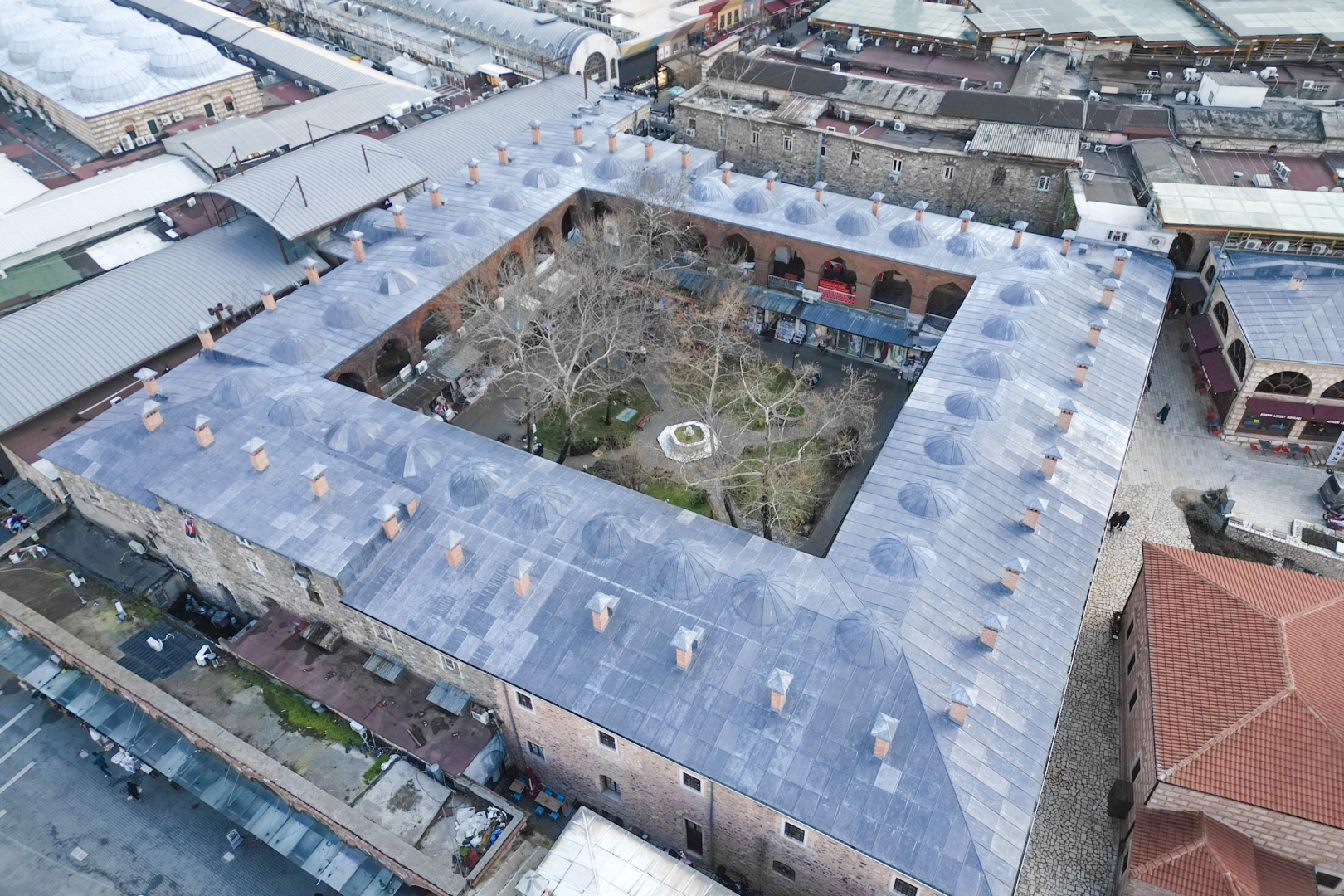 Bursa Büyükşehir Belediyesi tarafından Hanlar Bölgesi’nde yer alan İpek Han’da yürütülen çalışmalar kapsamında, tarihi yapı cepheden çatıya kadar özgün kimliğine kavuştu.